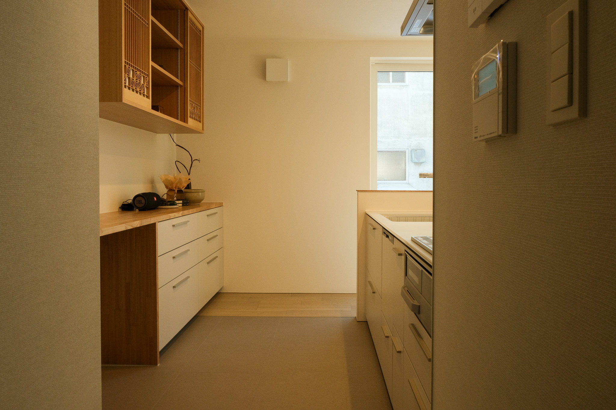 キッチンにあるカップボードなどは、どこか和の趣きを感じられるデザインに仕上げています。もともと、日当たりの良い建物で、室内には心地よい光が差し込みます。