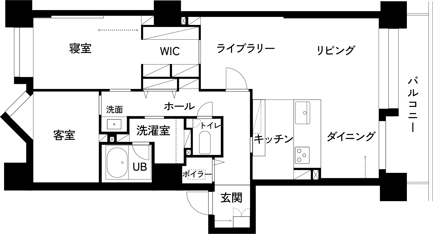 ウォークインクローゼット・寝室・廊下づけの洗面台からリビングまでが回遊できるようになっており、身支度のための動線がなんともスマート。また、読書など趣味を楽しむライブラリースペースが備わっているのも大きな特徴です。