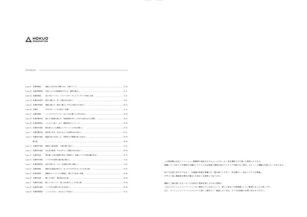 施工実例集の他に、北王リノベーションの会社概要・セレクトリノベーションガイドブックも同梱しています。